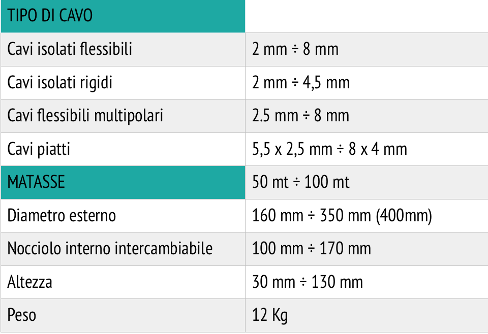 Linee automatiche di matassatura per cavi unipolare e multipolari in funzione del sistema di svolgimento (défilé o deroulé). Con il sistema di svolgimento défilé le linee possono produrre fino a 6 matasse al minuto da 100m in funzione del diametro-sezione cavo .