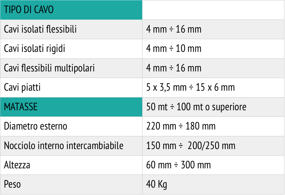 Linea Automatica di matassatura per cavi multipolare, nella versione standard è equipaggiata di accumulatore orizzontale garantendo un processo di lavoro continuo, raggiungendo una produzione di 3 matasse al minuto da 100 metri (in funzione del diametro del cavo).