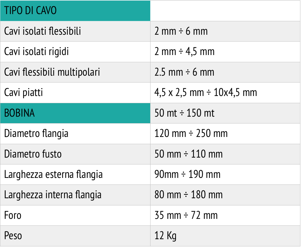Linea automatica di Bobinatura equipaggiata di doppia testa di avvolgimento ha come sua prerogativa la velocità di produzione fino a 4 bobine al minuto da 100m (in funzione del diametro cavo).