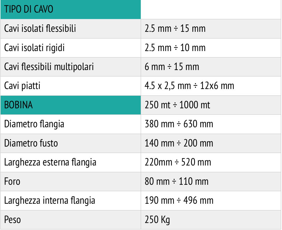 -Larghezza totale bobina: da 220mm fino a 520mm