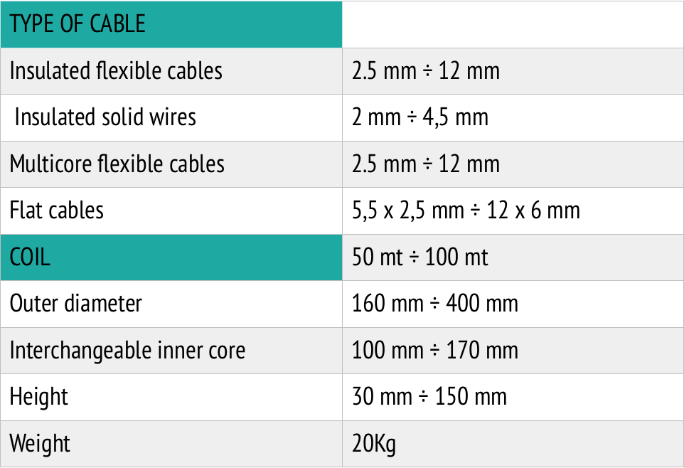 We have designed this model line, in order to process single and multicore cables, up to 12mm of outer diameter. This Line can process a wide range of cables and can be equipped with two Unwinding Systems: Defilé (Flyer Pay Off) for single core cables and Deroulé (motorized stand) for multicore cables.