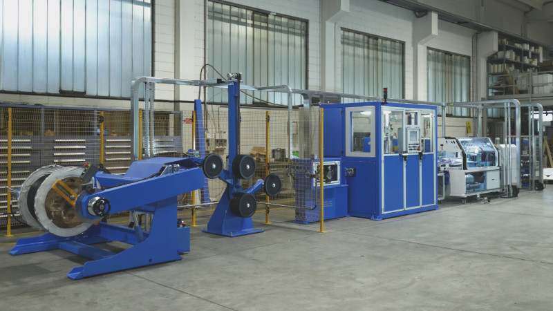 Linea automatica di matassatura progettata per produrre matasse di piccolo taglio (5, 10, 25, 50 m), è in grado di avvolgere matasse con lunghezza di 100m in funzione del diametro cavo.